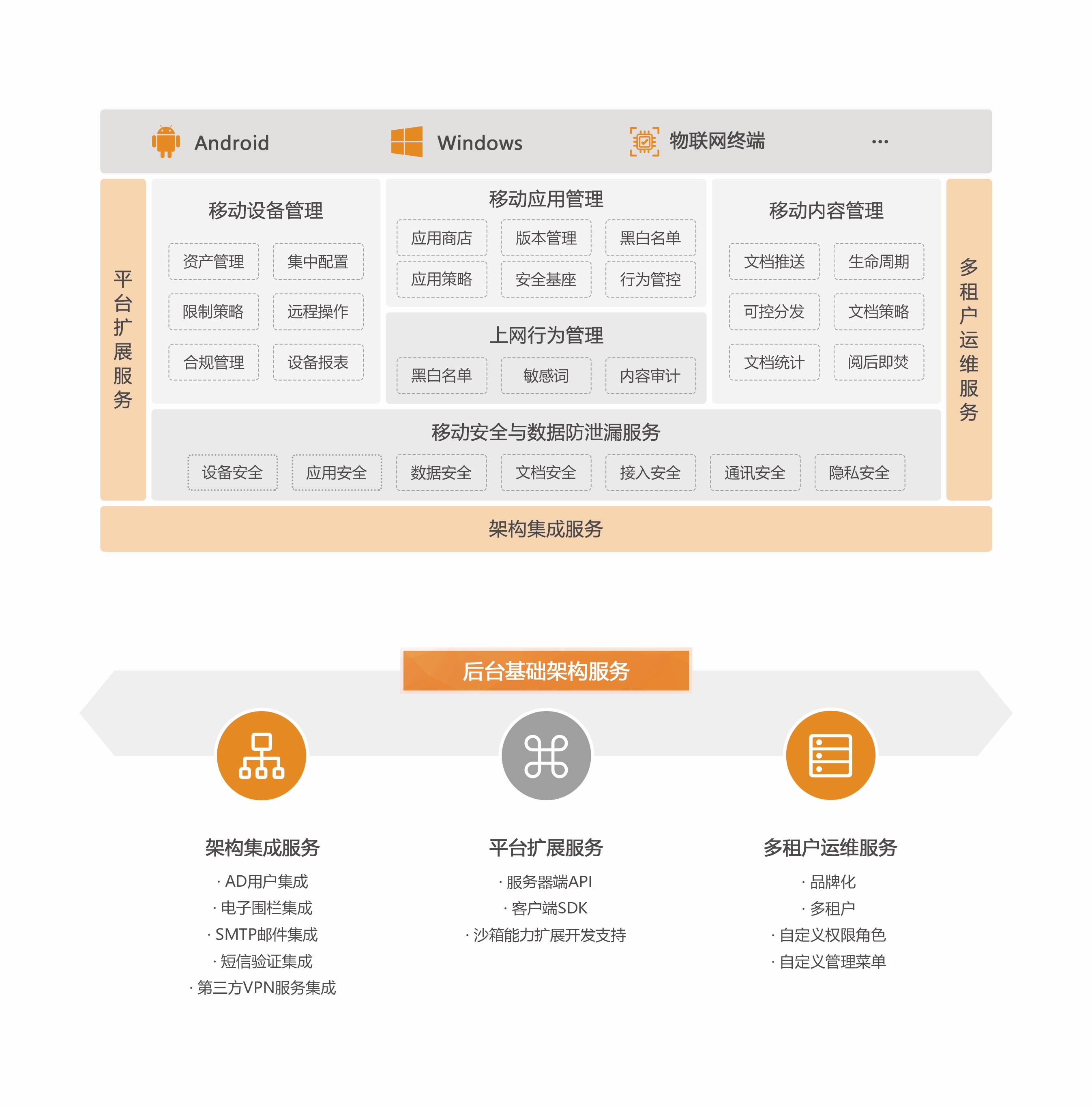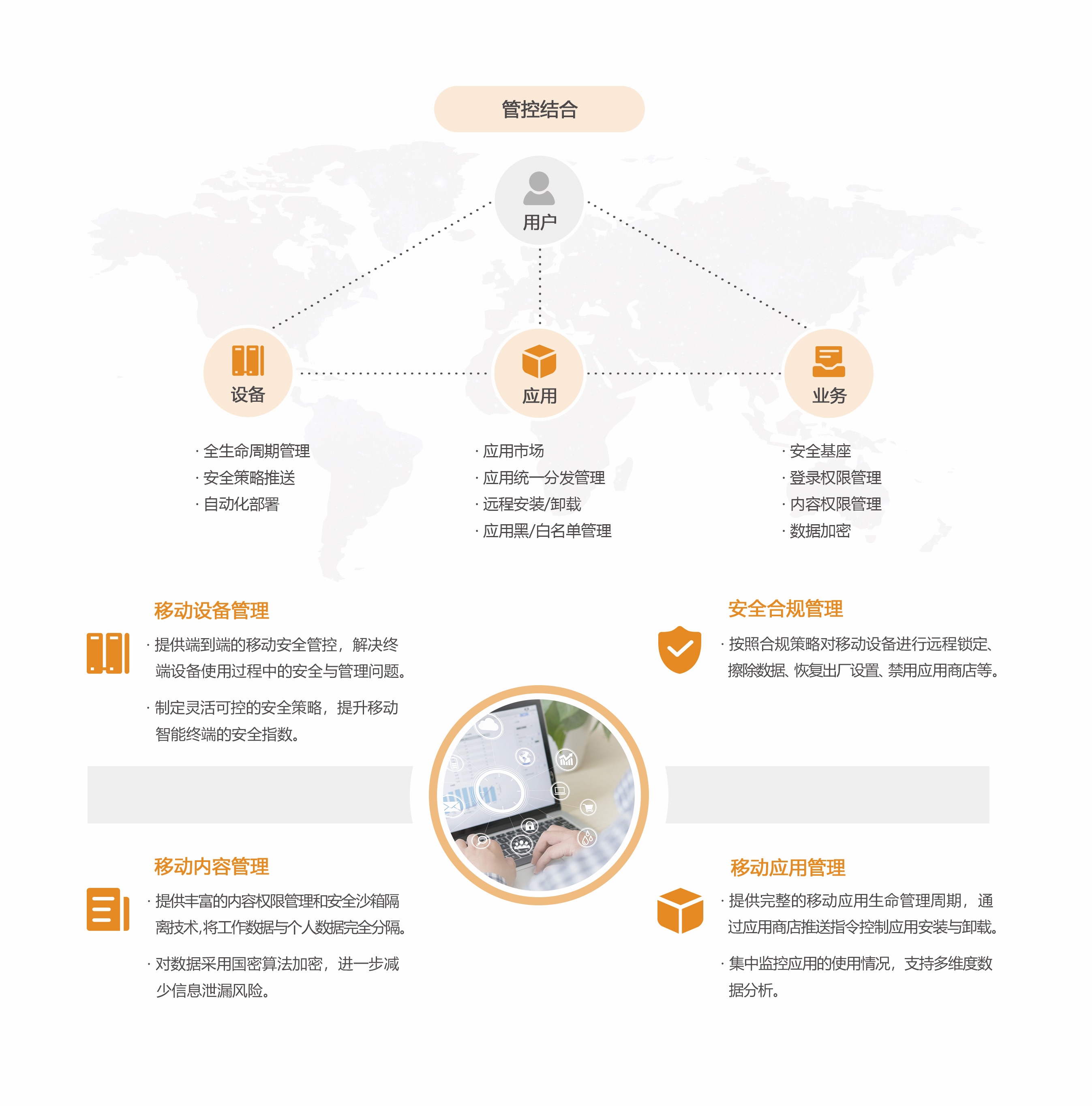 移動安全管理平臺是集移動設(shè)備管理、移動應(yīng)用管理、移動文檔管理、安全合規(guī)管理于一體的移動安全管理系統(tǒng),可從用戶、設(shè)備、應(yīng)用、數(shù)據(jù)四個維度高效管理移動端的安全風(fēng)險,是功能完整、能夠快速實施落地的移動安全管理產(chǎn)品。目前,平臺已廣泛應(yīng)用在公安、司法、應(yīng)急等多個行業(yè)。
